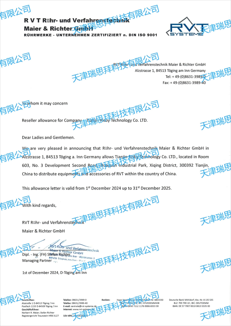 天津瑞思拜科技有限公司作為RVT SYSTEME中國區代理商,對所有RVT SYSTEME產品有銷售權,歡迎合作。